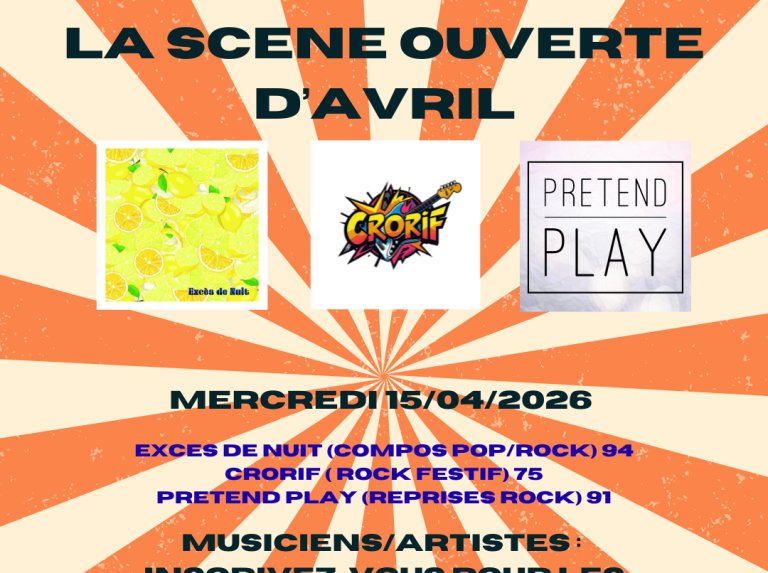 Pour cette scène ouverte de mars 2026, 3 groupes se présentent à vous pour se faire connaitre.